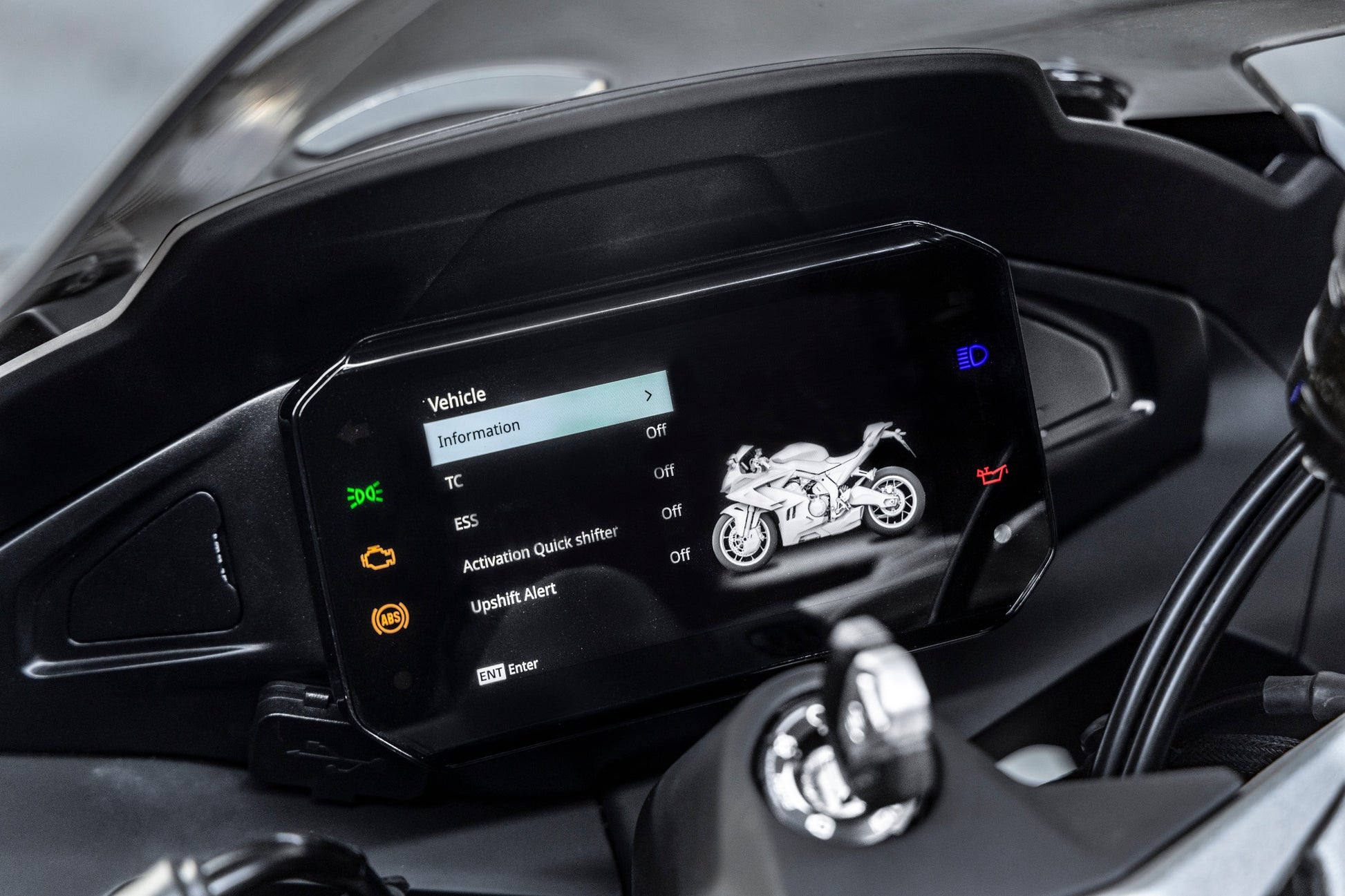 Esta máquina é equipada com quickshifter, ABS e controlo de tracção, garantindo mudanças rápidas e segurança em cada curva. A suspensão KYB totalmente ajustável e os travões com discos frontais de 300 mm e pinças radiais proporcionam controlo e firmeza nos momentos mais exigentes.